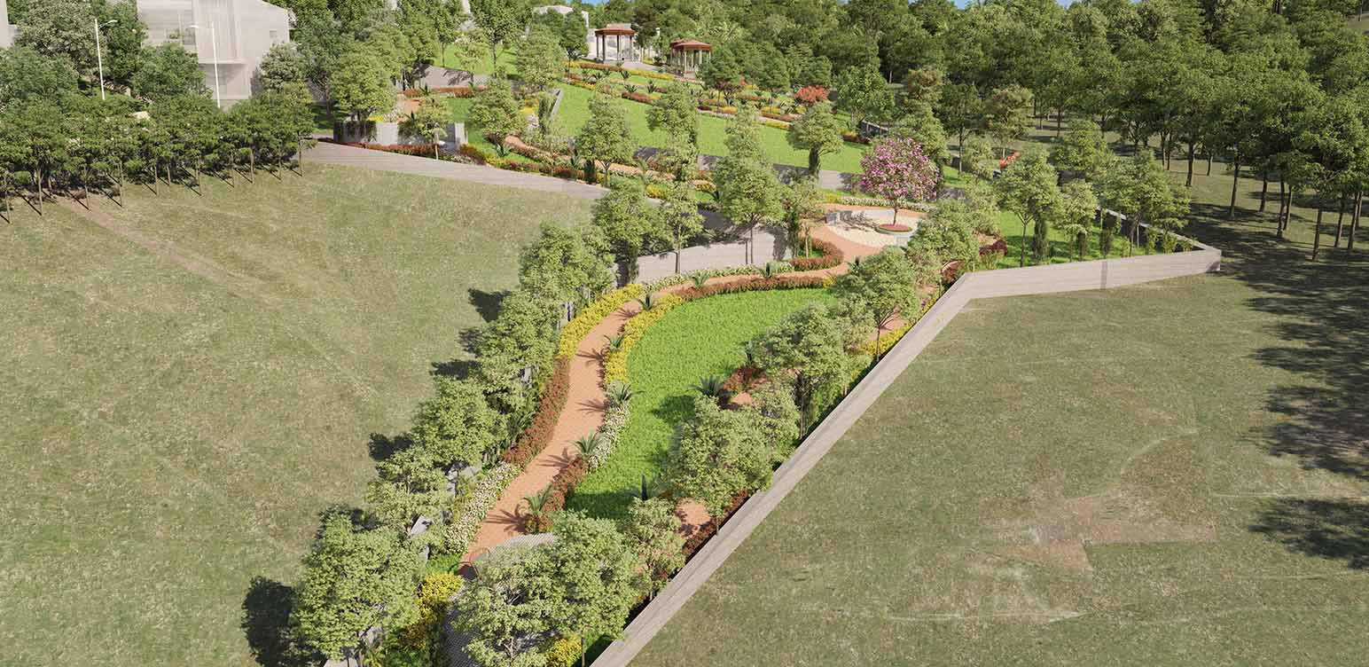Landscaped trails, hill views, and quiet green lungs everywhere.